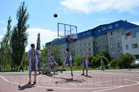 На ярко-зеленом поле и трибунах собрались юные спортсмены и горожане с детьми. Для них открытие нового физкультурно-оздоровительного комплекса – настоящее событие. Мальчишки и девчонки уже размялись на новых тренажерах и от души поиграли и побегали на площадках. Возле баскетбольных колец команда спортсменов провела матч.