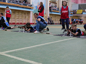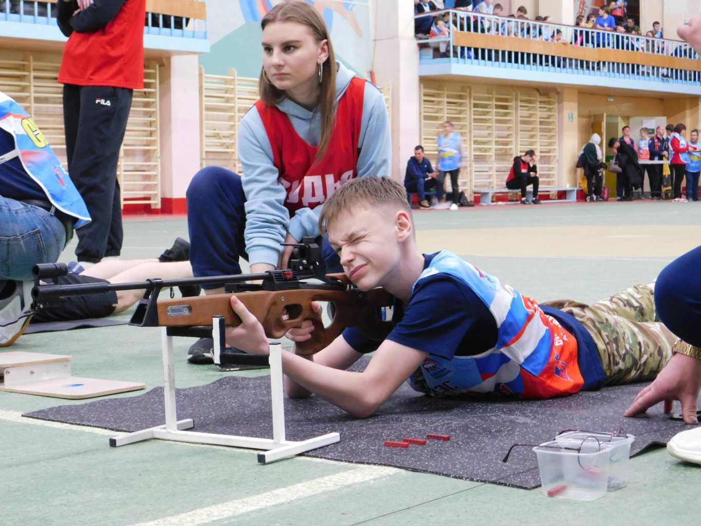Соревнования проводились по 3-м возрастным категориям: младшая (школьники 5-7-х классов), средняя (8-9-х классов) и старшая (школьники 10-11-х классов). В каждой команде было по 2 юноши и 2 девушки. Участие приняли 43 команды из 17-ти школ, всего более 170-ти участников. Основные виды соревнований – челночный бег и стрельба по мишеням из положения лежа без переноса винтовок. Ребята в форме эстафетной гонки добегали до рубежей, выполняли по 10 сгибаний-разгибаний туловища в положении сидя на стрелковом коврике с фиксацией стоп ног судьей, делали по 5 выстрелов по мишеням и возвращались к стартовой линии для передачи эстафеты. В случае промахов на рубеже выполнялись «штрафные» упражнения – сгибания и разгибания рук в упоре лежа на стрелковом коврике: 3 – у девушек, 5 – у юношей за каждое неточное попадание. В ходе 9-ти стартов на 5-ти дорожках шла спортивная борьба, многие участники показали хорошие навыки стрельбы и упорство в выполнении этапов соревнований.