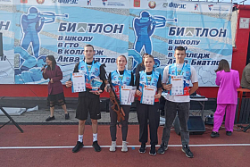 С 19 по 20 сентября в Екатеринбурге на финале Всероссийского марафона «Биатлон в школу. Биатлон в ГТО. Биатлон в колледж. Аква биатлон» город Курган представили три команды юнармейцев из школы № 75 имени Героя России Е.В. Родькина.
