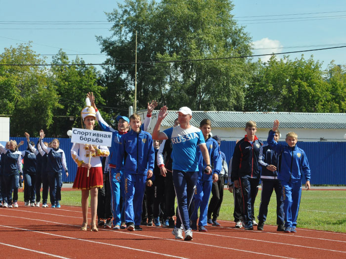 Раздались фанфары и на новенькую дорожку стадиона парадом вышли представители различных видов спорта - легкоатлеты и художественные гимнастки, боксеры и самбисты, хоккеисты и каратисты, футболисты и баскетболисты, тхэквондисты и борцы, мастера пауэрлифтинга и спортивной акробатики, а также участники VIII летней Спартакиады учащихся России.