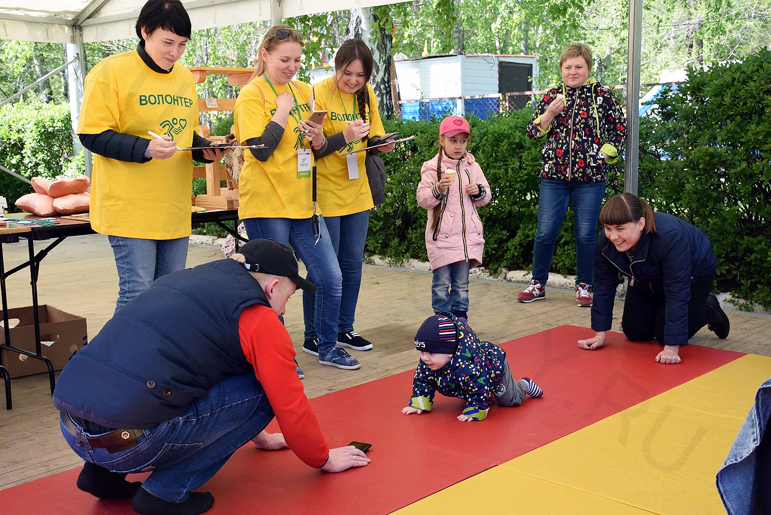 В Кургане мероприятие состоялось в Центральном парке культуры и отдыха и началось с забега для самых маленьких – детей до года. Малыши стали участниками «Забега в ползунках», а их родители, бабушки и дедушки – болельщиками первого спортивного состязания в жизни их детей. Преодолеть дистанцию маленьким спортсменам помогали любимые игрушки, бананы, бутылочки с молоком и сотовые телефоны, которые служили стимулом для движения. В некоторых случаях помогал личный пример родителей. Крохотные спортсмены и спортсменки соревновались в скорости ползания. Кто-то проползал расстояние на специально организованных дорожках за несколько секунд, а кому-то для этого требовались минуты. Как и на взрослых соревнованиях у малышей были свои правила. К примеру, если участник более 30-ти секунд не двигался с места, его снимали с дистанции.