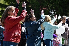Недалеко от площадки, где маленькие спортсмены участвовали в забегах, проходила программа - «Гонки роботов». На центральной эстраде ведущие разыгрывали призы и подарки от партнеров праздника. Здесь же все желающие могли испытать свои силы в фитнес – зарядке, посмотреть выступления творческих коллективов.