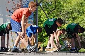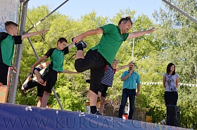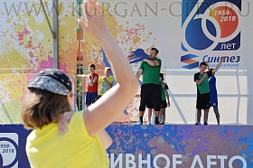 После недолгой разминки тренер и воспитанники Детской (юношеской) спортивной школы № 3 продолжили вести зарядку, показывая уже более интенсивные задания. Голову, шею, плечи – всё нужно подготовить к насыщенному трудовому дню. Наклоны и растяжку не боялись повторить даже ветераны. Кстати, для безопасности курганцев в парке дежурила машина скорой помощи.