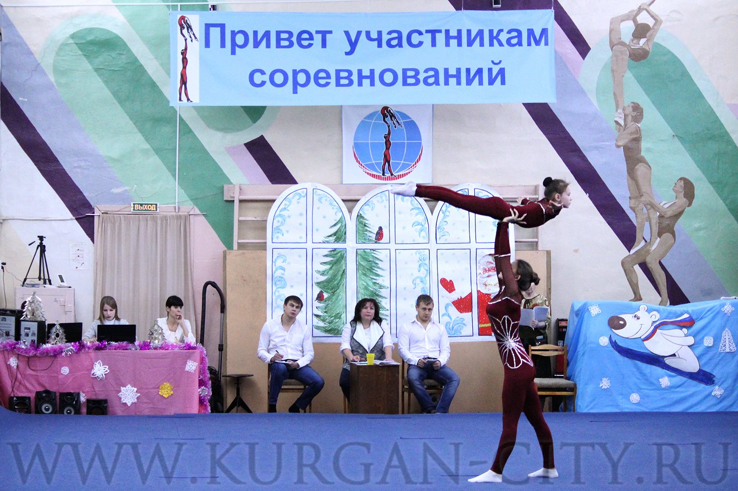 В Кургане продолжается череда мероприятий, посвященных наступающему Новому году. Сегодня праздничная атмосфера царит в Детско-юношеской спортивной школе № 1 им. А. А. Семенова. Здесь проходят Чемпионат и Первенство города по спортивной акробатике на призы Деда Мороза.