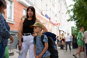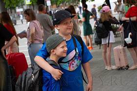 Второклассник Андрей Жиляков едет от спортивной секции самбо. У него много друзей, и мальчик рассчитывает всё лето заниматься спортом. «С друзьями буду летом гулять, мяч пинать, кататься на самокате, лето проведу в городе», - поделился Андрей.