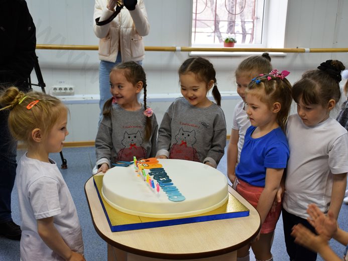 В ходе церемонии Сергей Руденко и Андрей Потапов посмотрели, как идут занятия в хореографическом классе и организованы развивающие уроки для дошкольников «Познайка». Ярким завершением праздника стало совместное с детьми задувание свечей на большом торте с логотипом студии.