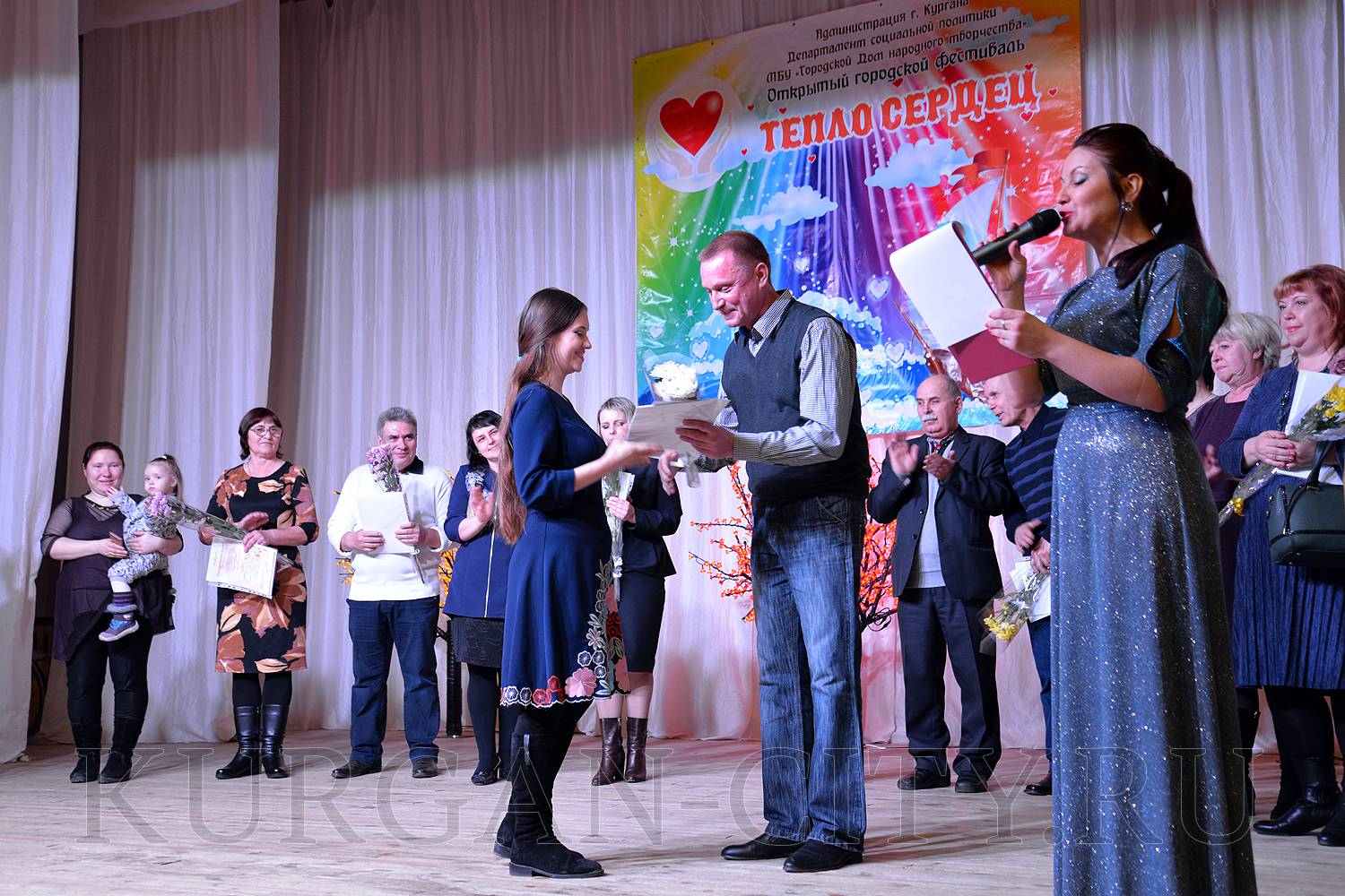 Ощущение внутренней теплоты, искренности, широты открытой души и огромного творческого потенциала – так можно сказать об атмосфере традиционного городского фестиваля «Тепло сердец», который прошел в городском Доме народного творчества. Фестиваль, участниками которого стали люди с ограниченными физическими возможностями, в очередной раз доказал, что их таланты безграничны, а теплотой своих горячих сердец они готовы поделиться с каждым. Участие в мероприятии приняли Руководитель Администрации города Кургана Андрей Потапов, его заместитель, директор Департамента социальной политики Игорь Постовалов и депутат Курганской городской Думы шестого созыва Наталья Семина.