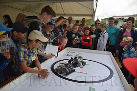 «Зеленый марафон», как и в предыдущие годы, превратился в Кургане в большой семейный праздник. На центральной эстраде была организована интересная концертно-развлекательная программа с выступлениями творческих коллективов, конкурсами, играми, различными забавами. На аллеях парка работала функционировали различные площадки по интересам. К примеру, с удовольствием малышня и взрослые следили за соревнованиями роботов, в которых роботы состязались в «беге» и «сумо»; играли настольные игры в читальне под открытым небом, путешествовали в «Читающем поезде», где в вагонах вместо традиционных проводников пассажиров сопровождать будут актеры театра-студии «Суббота+».