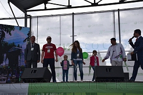 От имени муниципальных властей участников акции приветствовал заместитель Руководителя Администрации города Кургана, директор Департамента социальной политики Администрации города Кургана Игорь Постовалов. Игорь Владимирович поблагодарил руководство Сбербанка России, благодаря которому сегодня состоялся этот большой праздник, поздравил курганцев с Днем защиты детей и первым днем лета, пожелал здоровья, счастья и благополучия, а также пригласил горожан и гостей города в Центральный парк культуры и отдыха на спортивные зарядки и фитнес-тренировки, которые, как и в прошлом году, будут проводиться на территории ЦПКиО в течение всего лета.