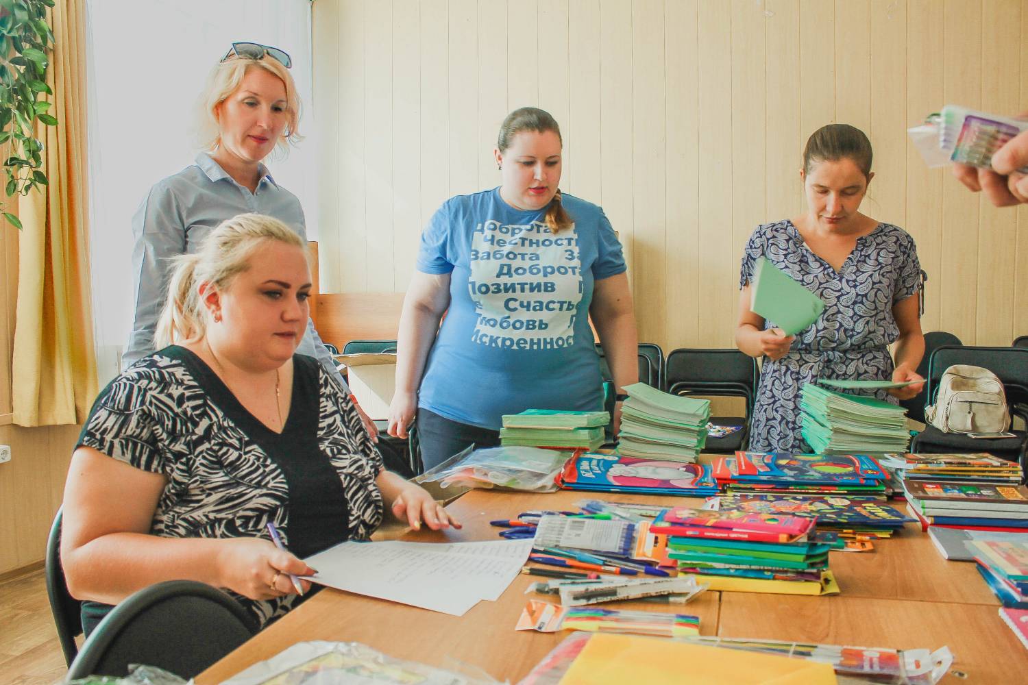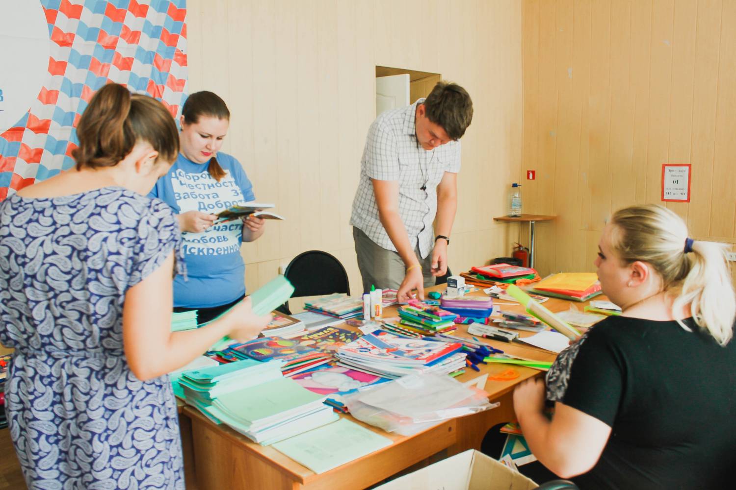 Пункт сбора гуманитарной помощи был организован в Курганском Доме молодежи (Карла Маркса, 40). Взрослые и дети присоединились к акции и с 25 июля по 15 августа несли тетради, пластилин, картон и другие школьные принадлежности.