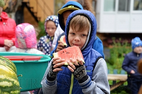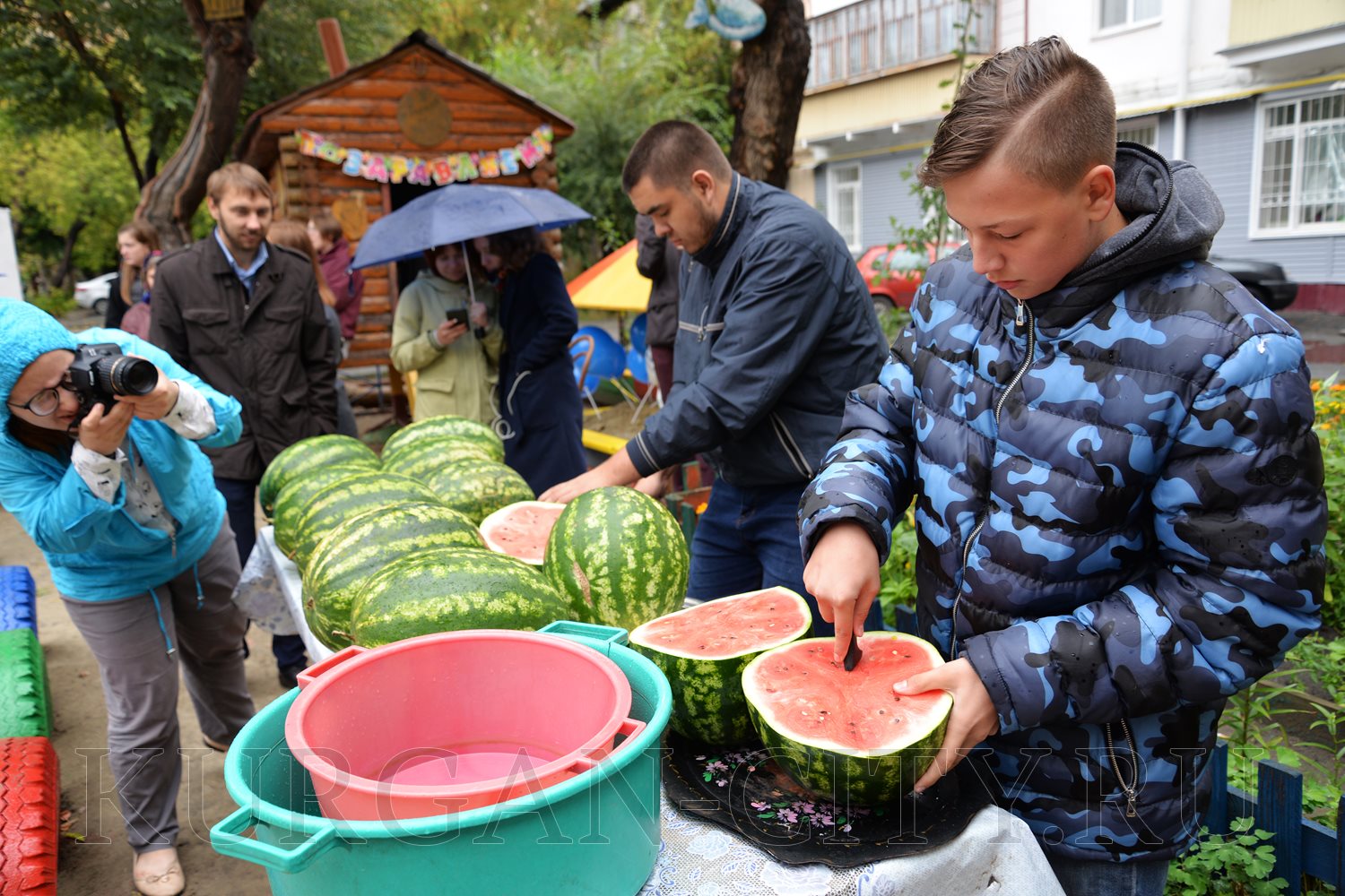 Угоститься сочным кусочком красного плода курганцы смогли сегодня во дворе дома № 55 по улице Гоголя. Там традиционно в последние дни лета жители проводят праздник «День арбуза».