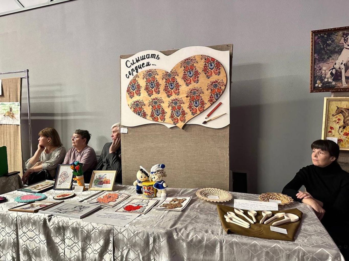 В фойе городского Дома народного творчества и большом зале работала выставка декоративно-прикладного искусства. Всем желающим было предложено принять участие в мастер-классах и написать письма со словами поддержки участникам специальной военной операции.
