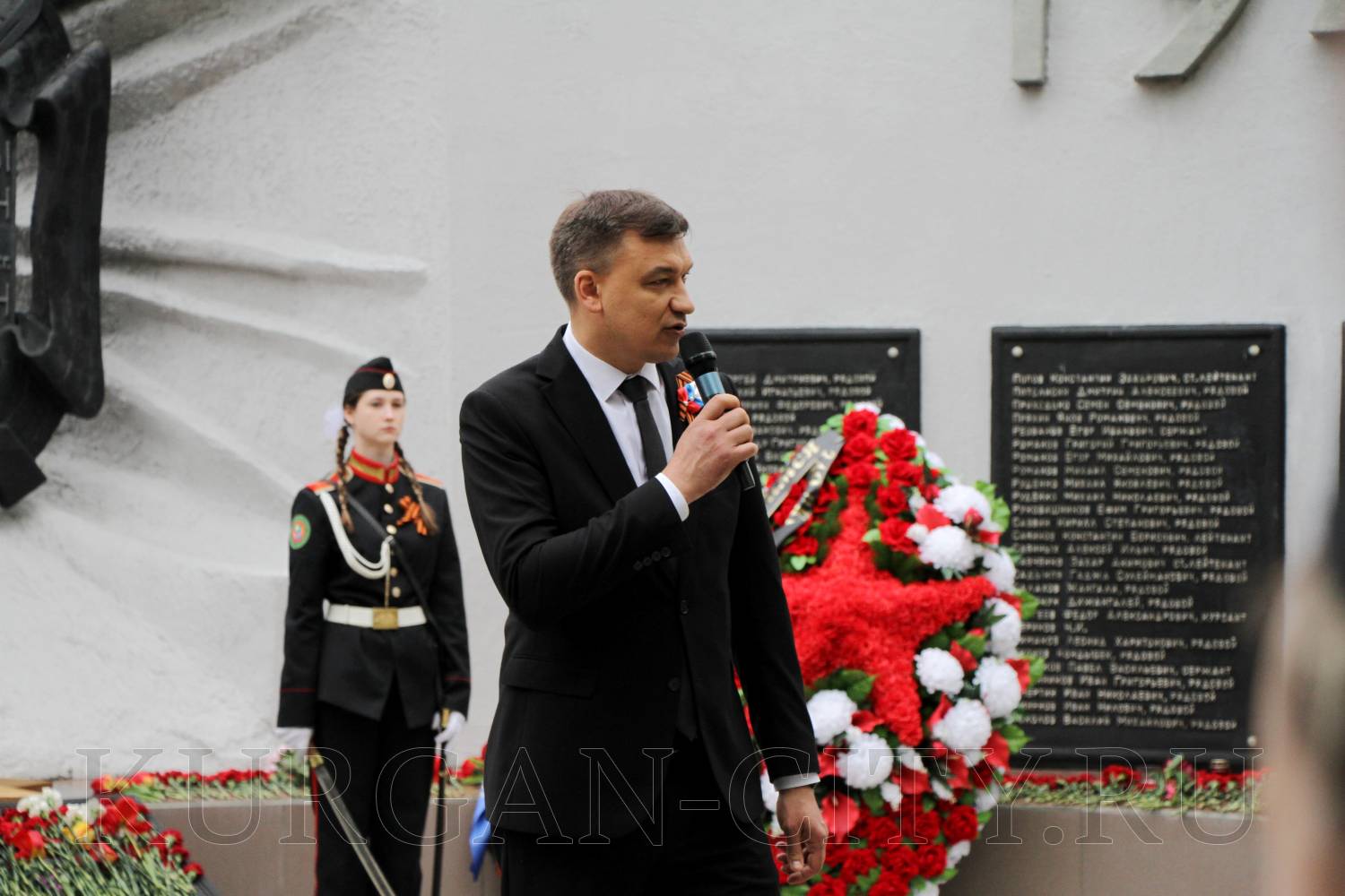 В памятном мероприятии приняли участие временно исполняющий полномочия главы города Кургана Антон Науменко, председатель Курганской городской думы Игорь Прозоров, депутаты, школьники, представители ветеранских организаций.