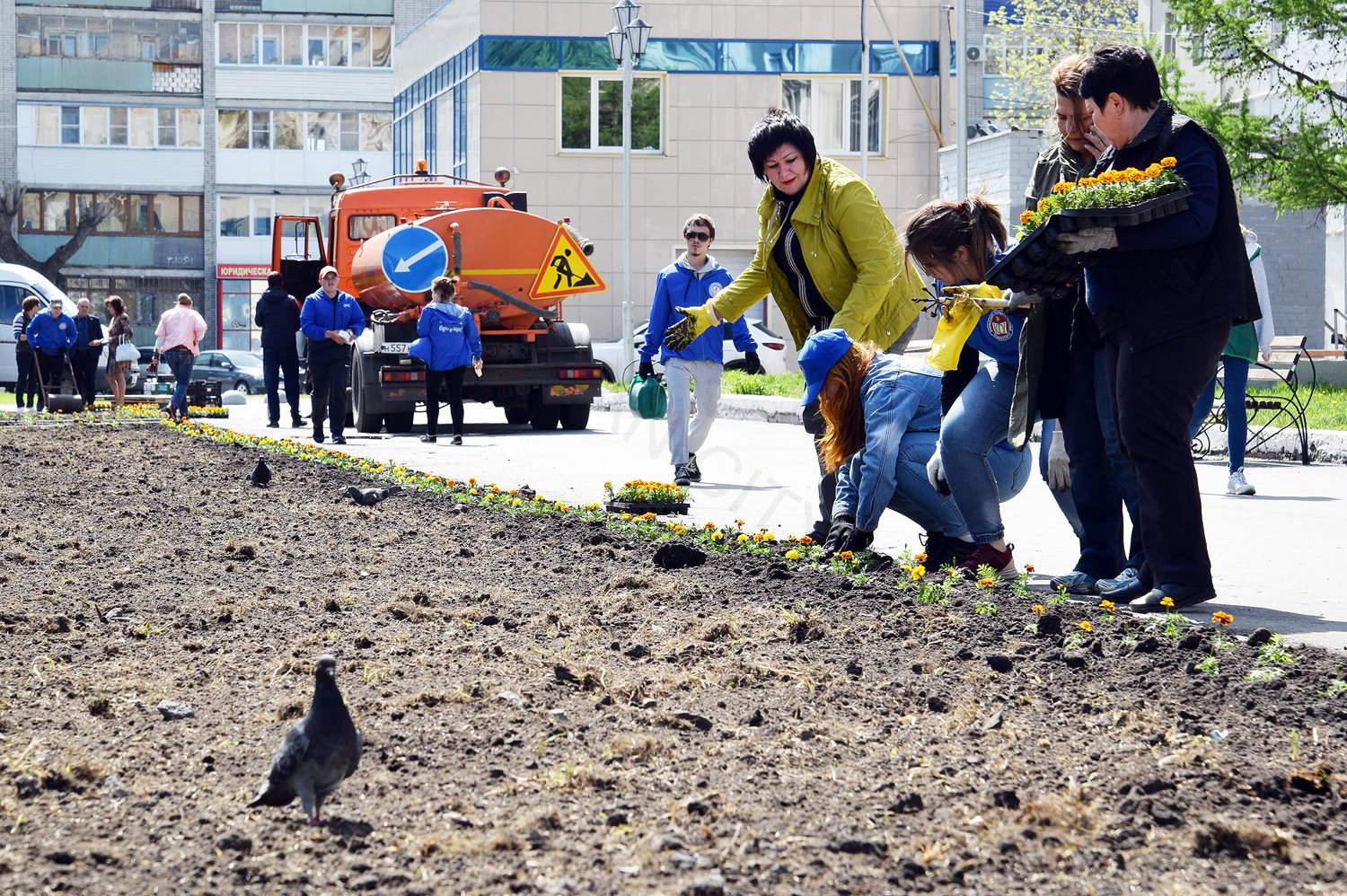 В этот раз партнёры Союза помогли сделать тротуар поперёк места высадки цветов, дабы избежать вытаптывания саженцев. Таким образом, появилась дополнительная пешеходная дорожка посреди газона.