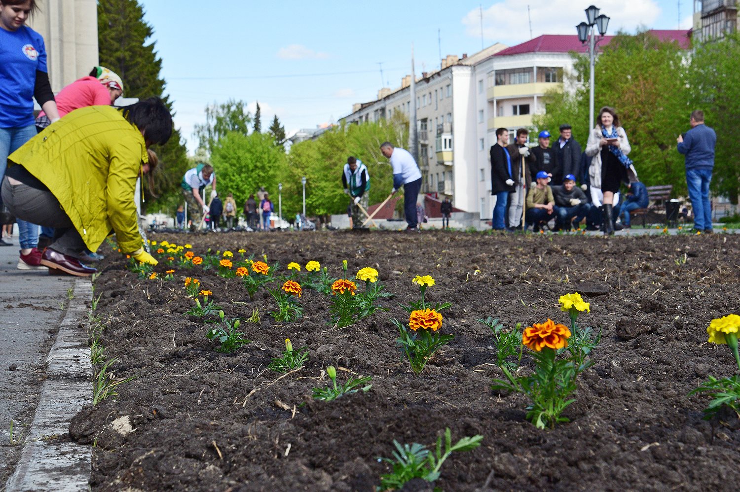 Сегодня, 30 мая, на клумбе пешеходного участка улицы Пушкина высадили порядка 1500 жёлтых бархатцев. Акция, инициатором которой является региональное отделение Союза женщин России, уже стала традицией.