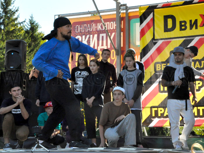 На протяжении всего мероприятия особое настроение присутствующим задавал энергичный и заводной ведущий Александр Романов. На главной сцене прошли выступления лучших танцевальных коллективов Кургана, имеющих огромное количество титулов и большой багаж мастерства, батлы по брейк-дэнсу и хип-хопу и множество конкурсов со зрителями. Следует отметить, что участников танцевальных поединков по хип-хопу – а их было более 30-ти - оценивал один из лучших хип-хоп-танцоров России и мира, обладатель множества российских и международных танцевальных наград, опытный преподаватель из Чебоксар - Монгол. Музыкальное сопровождение на танцевальных батлах обеспечивал