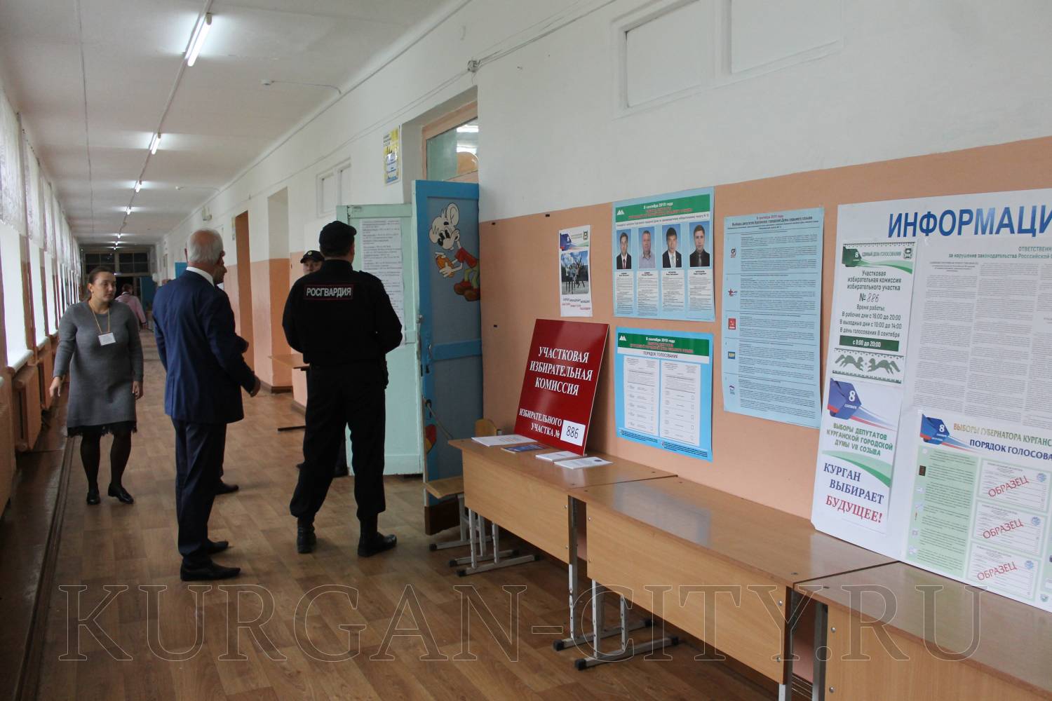 По информации Избирательной комиссии города Кургана, голосование в Кургане проходит в штатном режиме. На участках работают наблюдатели; организована торговля продуктами питания, оформлены выставки детских рисунков, поделок декоративно-прикладного творчества, в ряде учреждений, где работают УИК, в течение дня состоятся концерты. Охрану осуществляют сотрудники полиции.