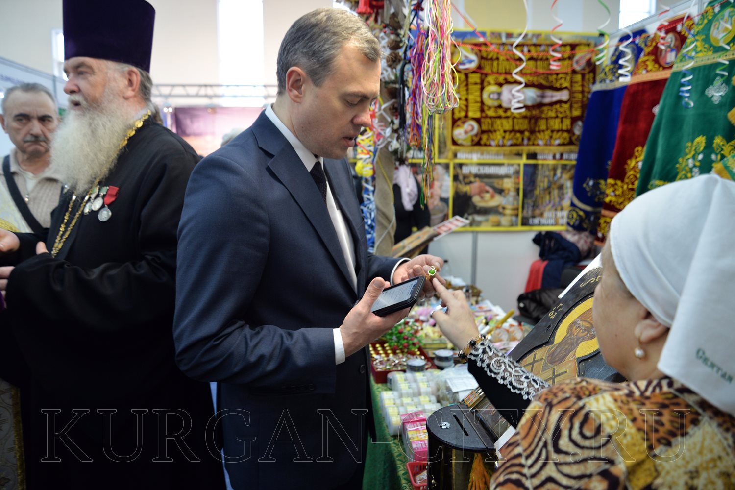 По уже сложившейся традиции началось мероприятие с молебна «На начало благого дела», который возглавил секретарь Курганской епархии иерей Леонид Перчугов. Сразу после молебна состоялась церемония открытия выставки-ярмарки. От имени руководства муниципалитета ее организаторов, участников и посетителей приветствовал директор Департамента экономического развития, предпринимательства и торговли Администрации города Кургана Павел Комогоров. Он отметил, что православная выставка стала ярчайшей вехой в культурной и духовной жизни нашего города. Значение подобных событий для Кургана трудно переоценить. Павел Федорович пожелал ярмарке плодотворной работы, а всем ее гостям и участникам – здоровья, мира, добра и благополучия.