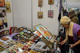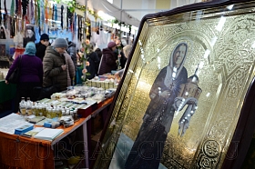 В экспозиции представлены иконы, духовная литература, ювелирные изделия, облачения, подсвечники, мира, ладан, чётки, браслеты с православной тематикой, пояса с молитвой, благовония и многое другое. Здесь же посетители могут приобрести монастырские сыродавленные масла, монастырский мёд и продукты пчеловодства, освященные мази и масла. Кроме того, здесь также представлены изделия народных промыслов, фермерские продукты, товары для здоровья, а также одежда из экологически чистых материалов. Главной святыней ярмарки в этом году стала восстановленная после страшного пожара Казанская Чимеевская икона Божией Матери.