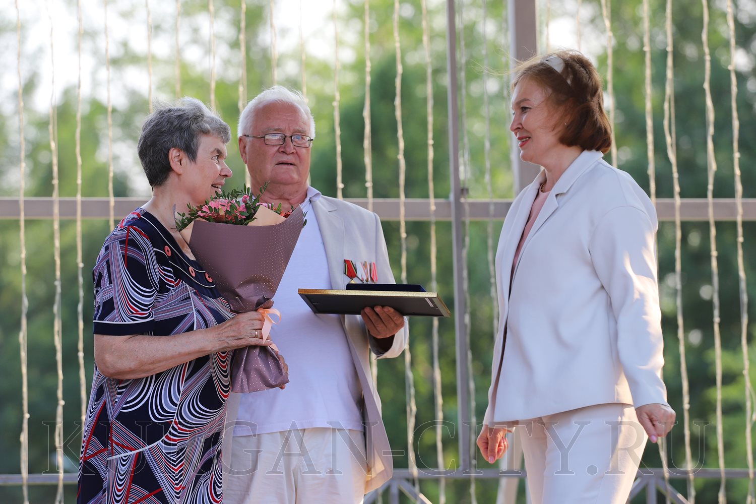 День семьи, любви и верности отмечали накануне во всей России. На главной сцене Центрального парка культуры и отдыха идущие многие годы рука об руку супружеские пары получили медали «За любовь и верность». Их вручили заместитель Губернатора по социальной политике Лариса Кокорина и заведующий отделом спорта Департамента социальной политики Администрации города Кургана Сергей Чугунов.