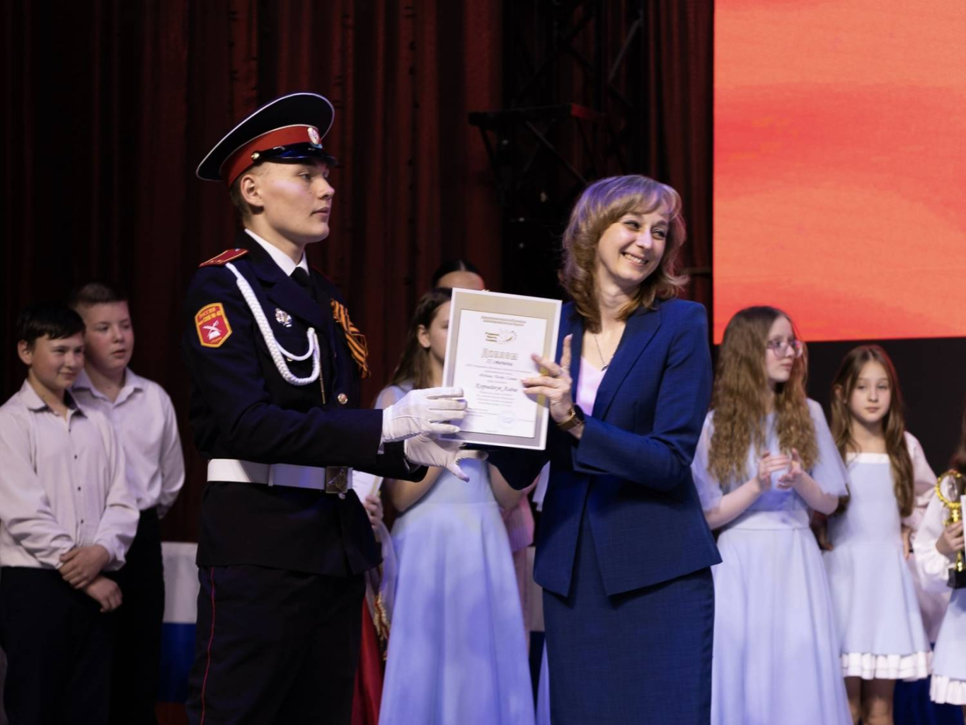 Талантливых ребят и взрослых приветствовала заместитель директора Департамента социальной политики, начальник управления образования Юлия Стефаник. Она поблагодарила каждого за искренность исполнения и за то, что через искусство участники делятся любовью к Родине. «Ваши выступления подарили всем незабываемые эмоции, чувство гордости за страну, напомнили нам о силе единства. Желаю всем участникам вдохновения, удачи и новых творческих побед», — отметила Юлия Викторовна.