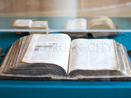 Особая гордость экспозиции - знаменитая «Острожская библия» - самое известное издание русского первопечатника Ивана Федорова. Книга представляет собой первый полный печатный текст Священного писания на славянском языке, а в работе над ее созданием, отмечают исследователи, приняли участие Иван Грозный и Папа римский Григорий XIII, которые прислали для создания книги рукописи Священного писания из своих библиотек.