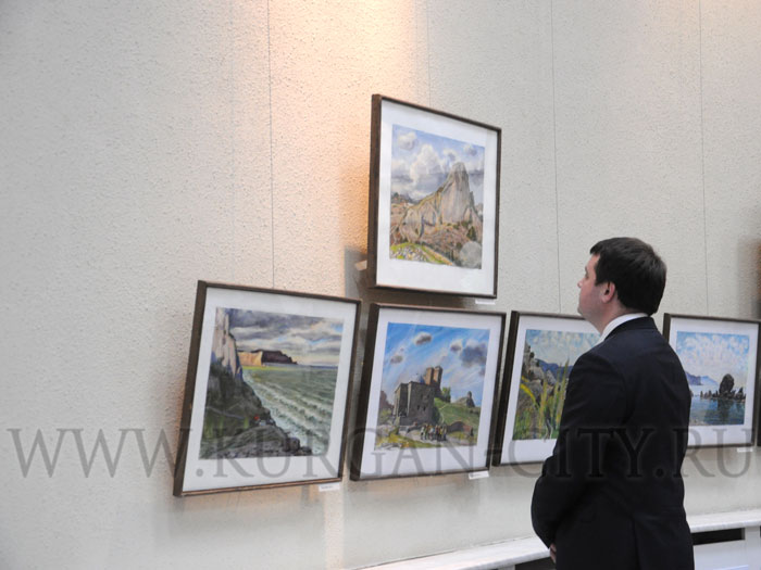 В Курганском областном культурно-выставочном центре открылась выставка живописи и акварели «Урал. Крым». В экспозиции представлены более 70 работ Народного художника России Германа Травникова, написанных им в 2016 году. На вернисаже побывал заместитель председателя Курганской городской Думы Александр Якушев.
