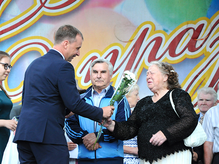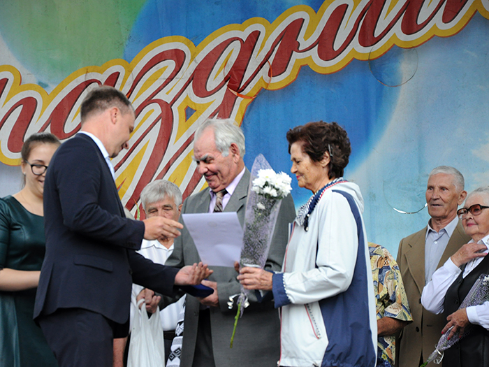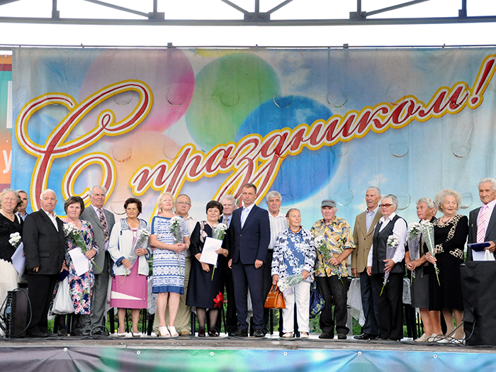 Особые слова поздравлений в этот день звучали в адрес супружеских пар, проживших вместе 50 и более лет. Это золотые и бриллиантовые юбиляры. На праздник были приглашены супруги Ивановы. Они познакомились в первом классе и всю жизнь прошли вместе рука об руку. В преддверии пятидесятилетнего юбилея, взяв в почетные свидетели всех гостей праздника, Владимир Александрович и Римма Николаевна обменялись новыми обручальными кольцами.