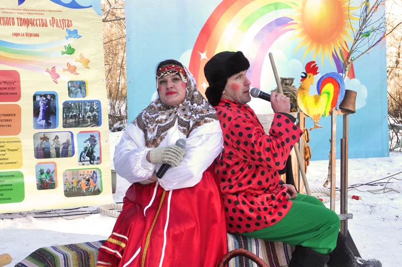 В этот день курганцев радовали своими выступлениями творческие коллективы Дома детского творчества «Радуга». Не давали собравшимся замерзнуть и ведущие, которые постоянно подогревали публику своими забавами, шутками и конкурсами, преобразившись в сказочных персонажей.