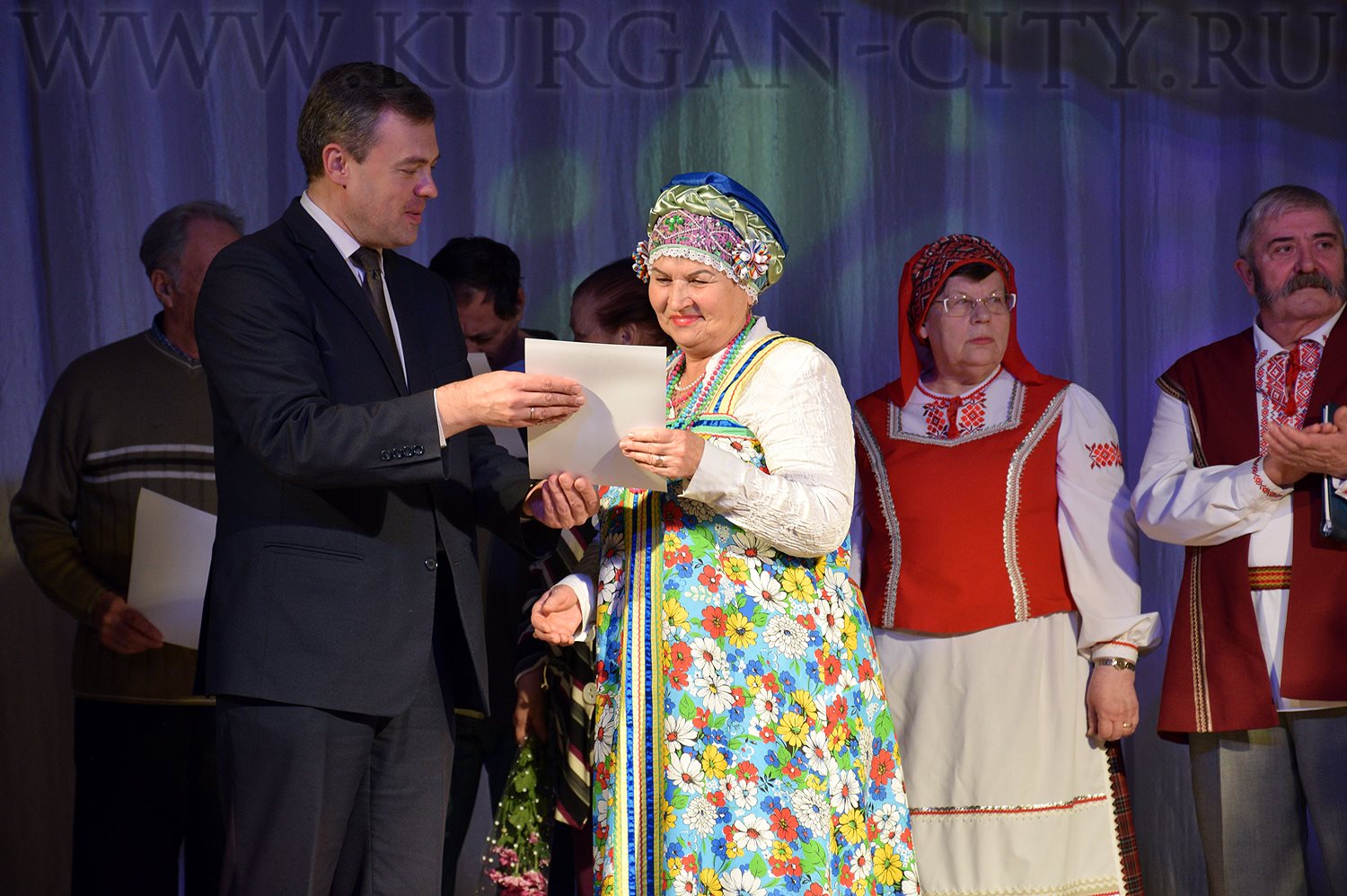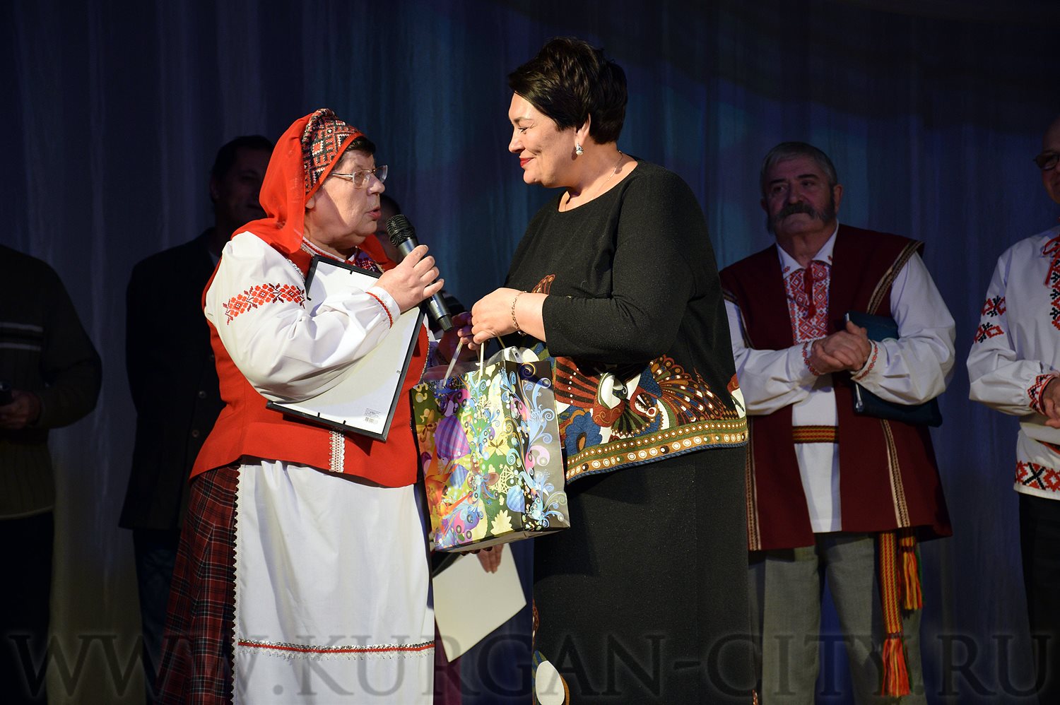 От имени Главы города Кургана Сергея Руденко Павел Комогоров вручил Приветственные адреса и памятные подарки представителям городских национальных организаций, общин и народных коллективов. С праздником присутствующих поздравила и директор МБУ «Городской Дом народного творчества» Алла Мирская.