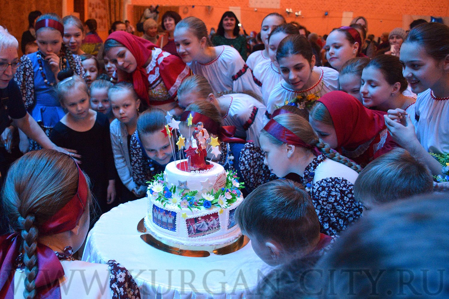 Ну и, как полагается, не обошлось без приятных сюрпризов. Самым вкусным из них стал эксклюзивный торт, который в подарок «Светлячку» от Администрации города Кургана изготовил шадринский комбинат «ГорпоУрал». Двухъярусный, с логотипом коллектива, пряничной танцевальной парой на верхушке и настоящими съедобными фотографиями «Светлячка», он вызвал восторг у ребят и их родителей. Директор МБУ «Городской Дом народного творчества» Алла Мирская даже пошутила: трудно придется ребятам: надо постараться, чтобы не съесть кого-то из своих друзей». Завершился праздничный вечер приятным чаепитием.