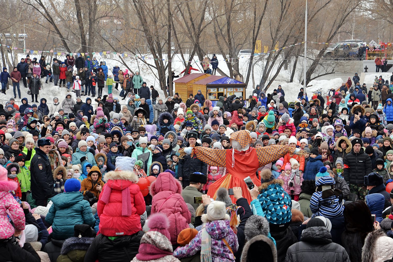 Замёрзнуть горожанам не давали не только активные игры, но и горячая еда, которую можно было приобрести в торговых рядах. Блины, расписные пряники, ароматная выпечка и душистый чай завлекали отдыхающих в тёплые палатки. Привлекала внимание сувенирная продукция и уникальные изделия ручной работы. По традиции праздник завершился сжиганием чучела. Именно так с древних времён следует провожать зиму и встречать весну.