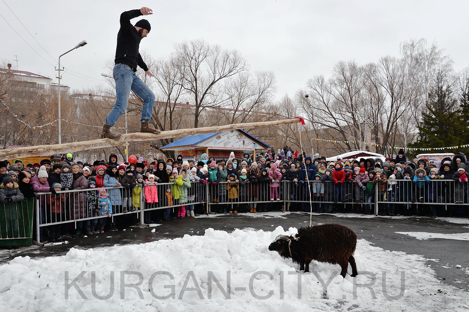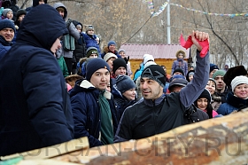 Зима и Весна, их тётушка Непогодушка, а также скоморохи и Забава с добрым молодцем провели на радость ребятне и взрослым весёлые конкурсы на смекалку, ловкость и силу. Прыжки через скакалку, перетягивание каната, поднятие гирь и нешуточное сражение за барана ожидали гостей в центральном парке. В четырехчасовой программе нашлось место для частушек, хороводов и катания на пони.