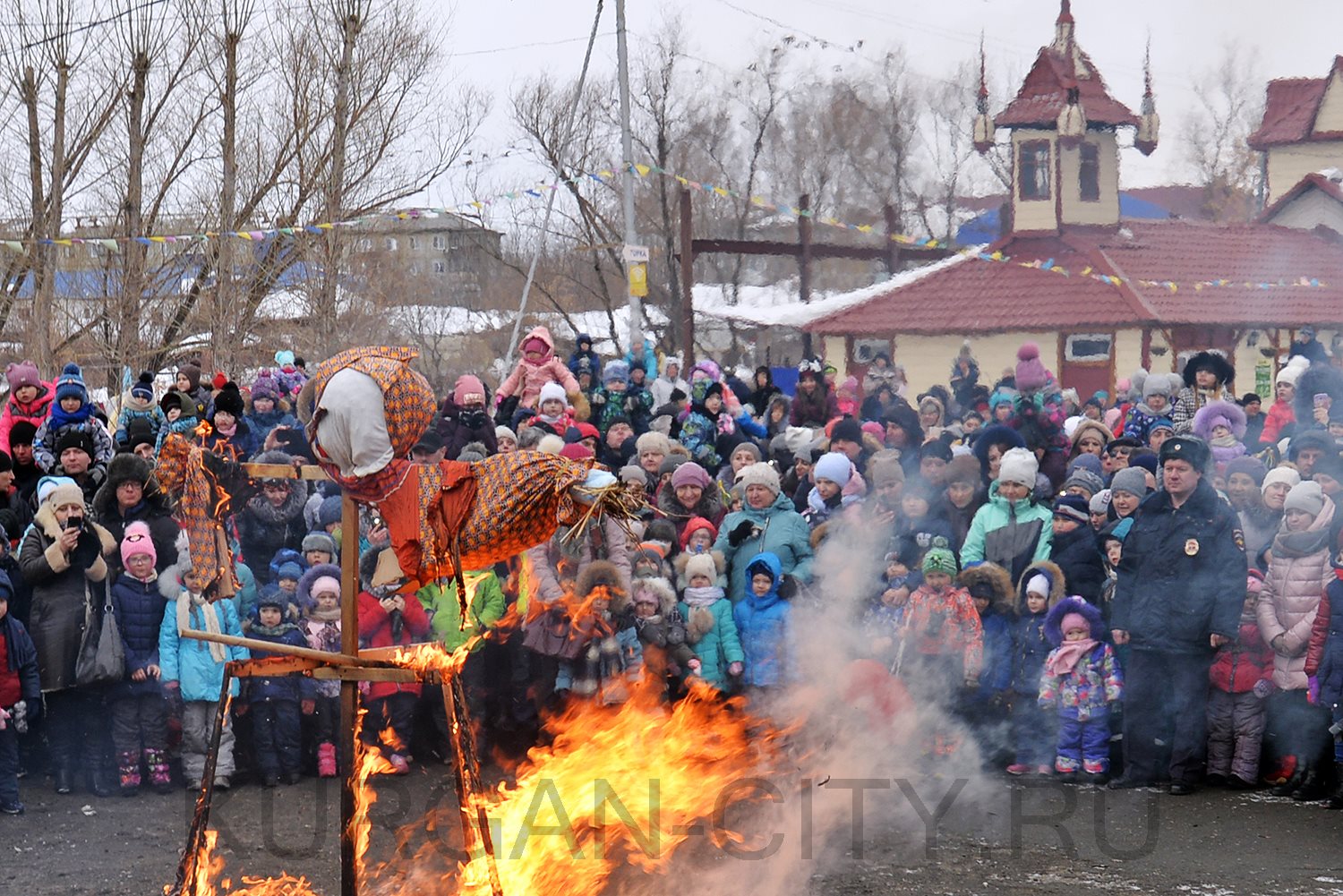 Горожан приветствовал заместитель Руководителя Администрации г. Кургана, директор Департамента социальной политики Игорь Постовалов. Он пожелал всем хорошего настроения, ясного неба и яркого солнца, которого так не хватало в воскресный морозный день. Тем не менее, борьба между зимой и весной неизбежно завершилась победой цветущего времени года, что наглядно показали в театрализованном представлении артисты Дома культуры им. М. Горького.