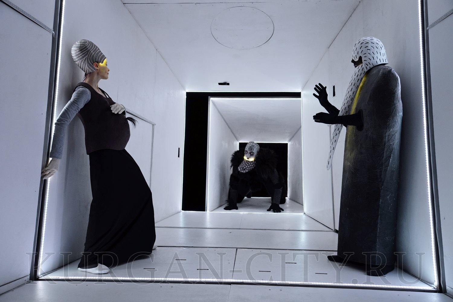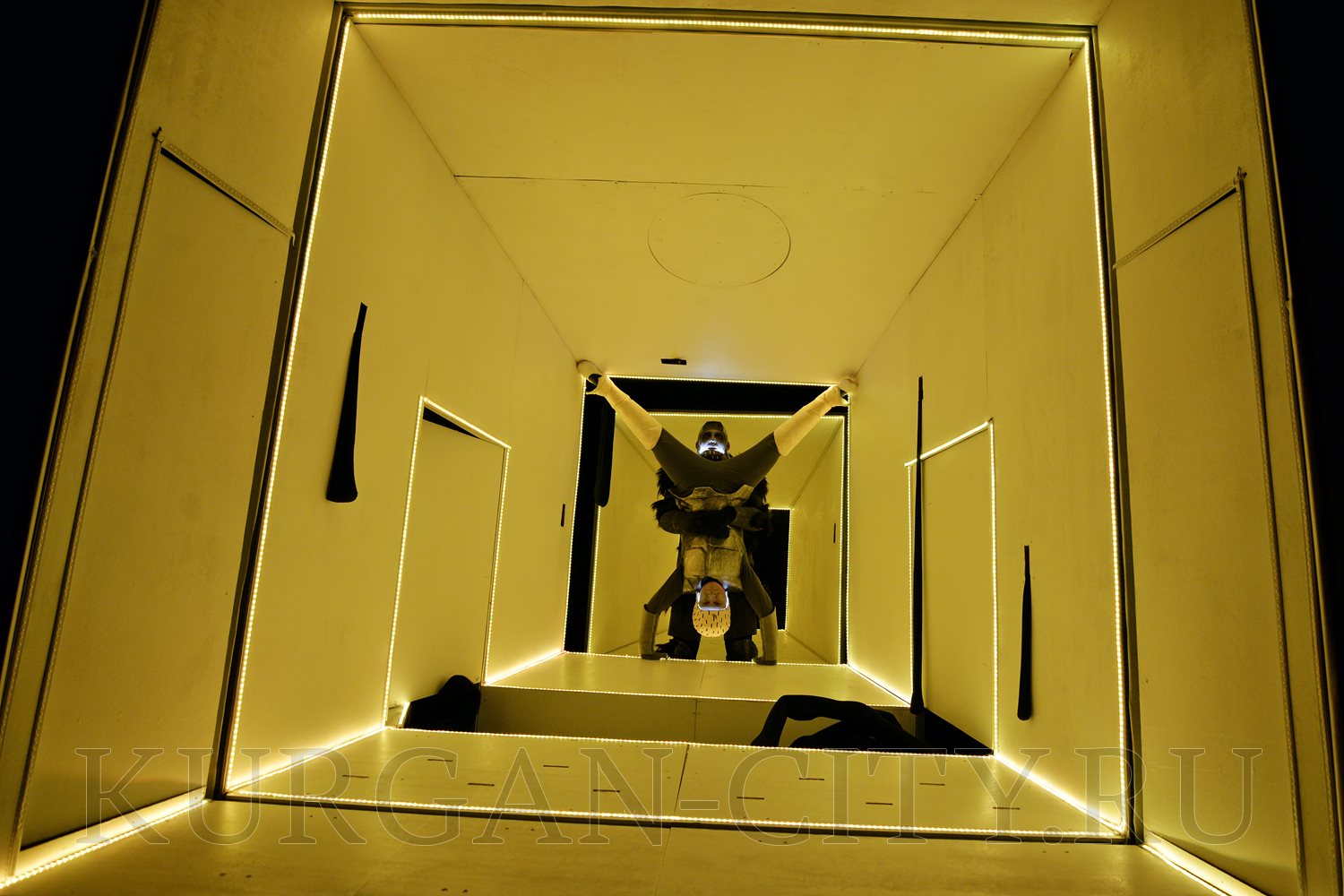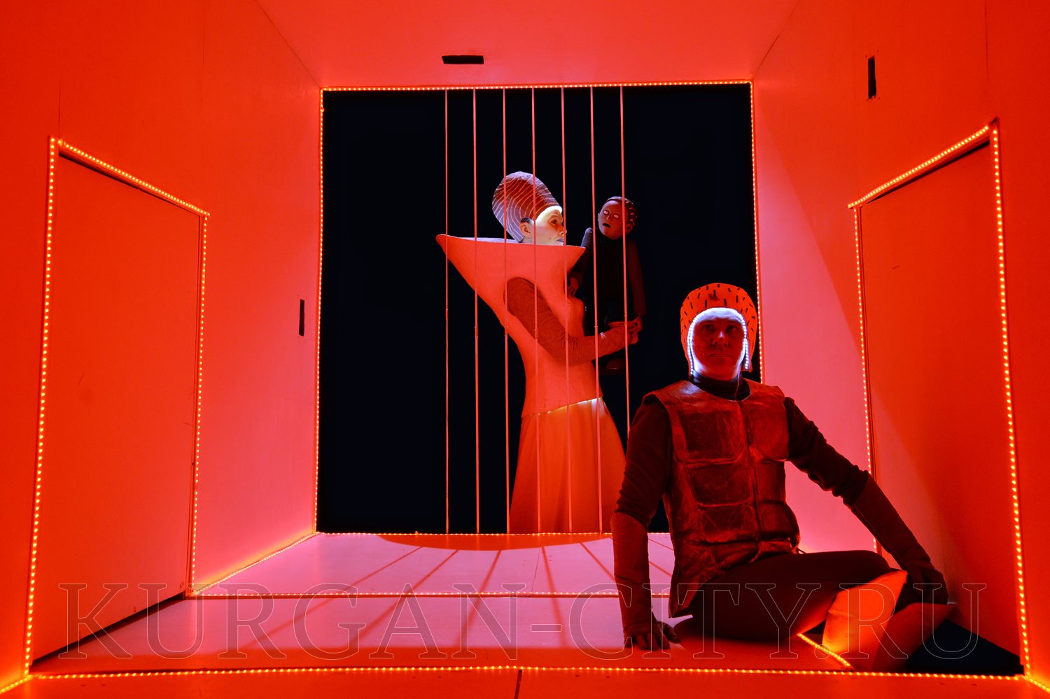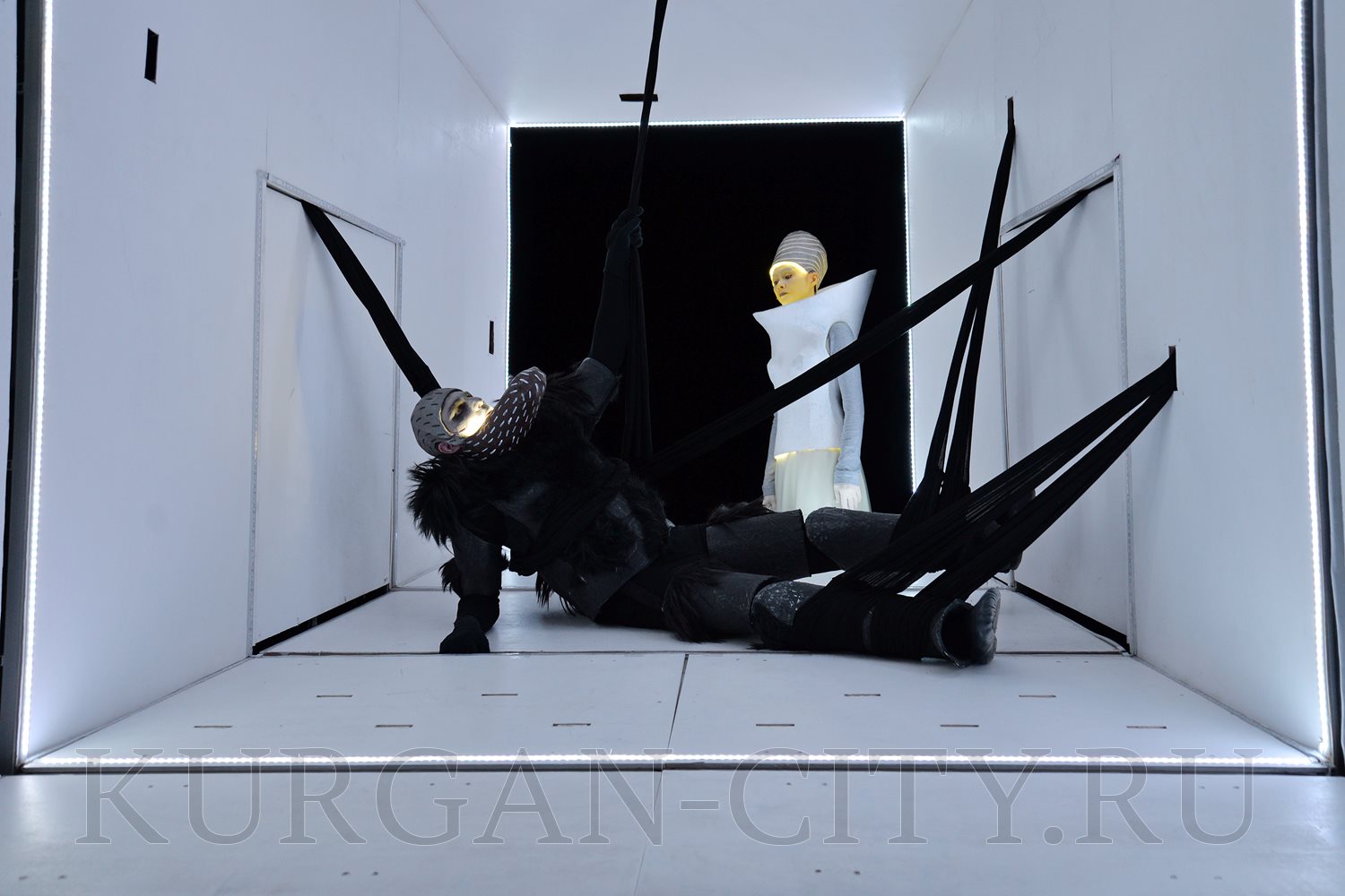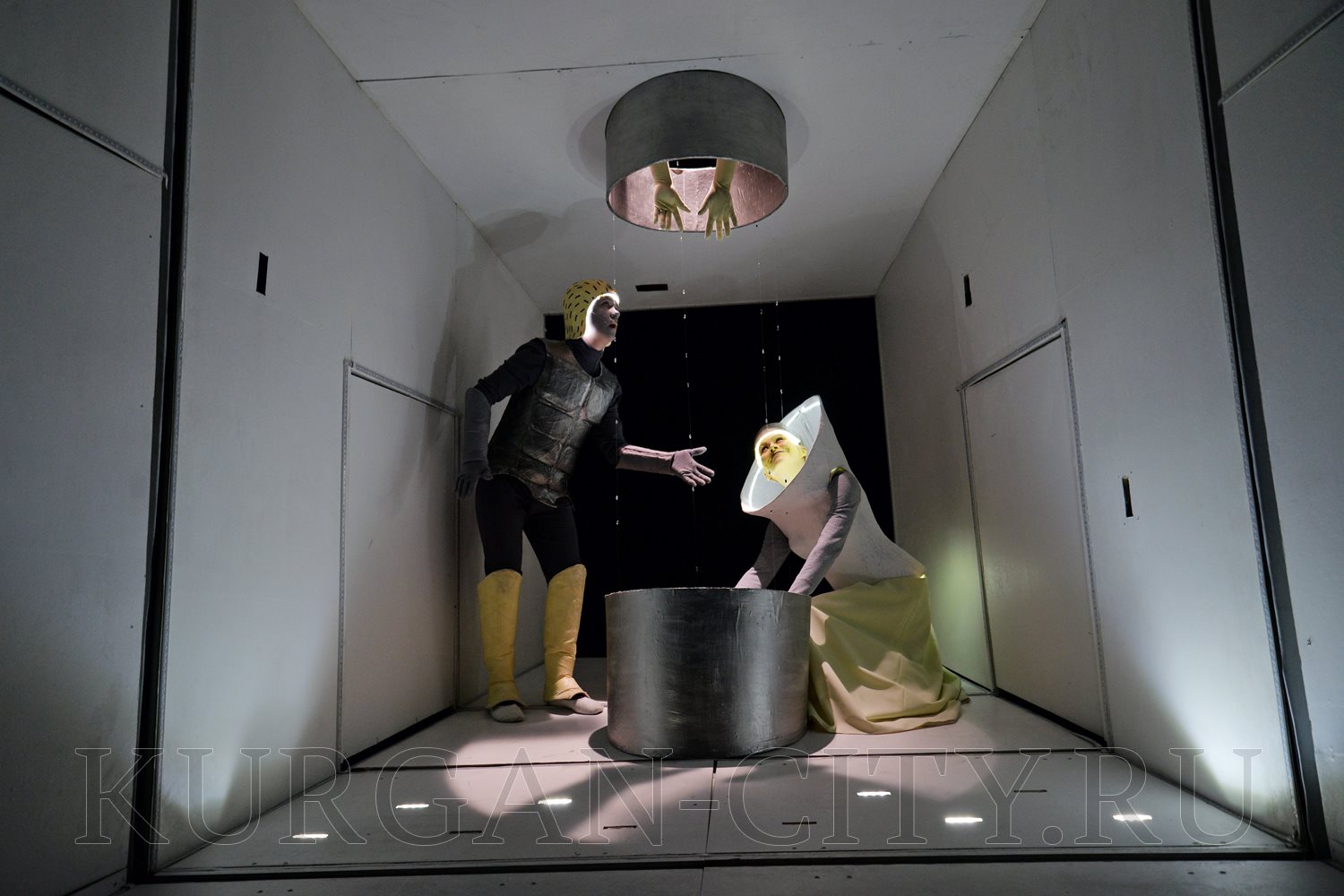 В первый день фестиваля гостей удивил спектакль для взрослых (16+) «Пелеас и Мелисанда», поставленный белорусским режиссёром Александром Янушкевичем по пьесе бельгийского писателя Мориса Метерлинка. Актёры курганского театра кукол предстают здесь в фантазийных, футуристичных костюмах, над которыми бутафоры работали несколько месяцев. Воображение поражает и сценическое пространство – своеобразная трёхмерная конструкция с движущимся основанием. Действующие лица здесь не только люди и куклы, но и свет, имеющий особый характер, и музыка с мотивами Средневековья.