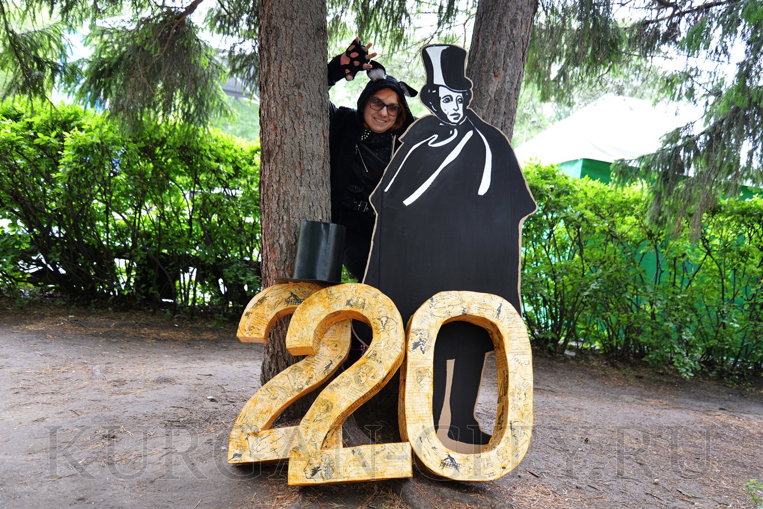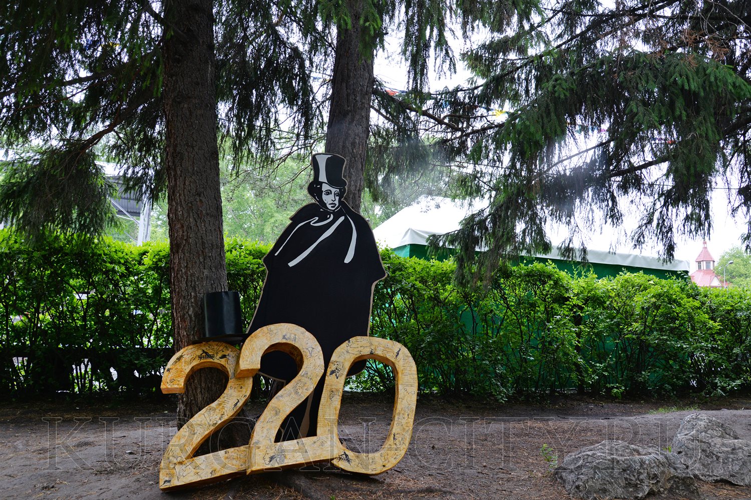 Все, кто сегодня пришел в ЦПКиО, также имели возможность сделать фото на память рядом с тематической композицией. Фотозона, посвященная юбилейной дате со дня рождения классика, была подготовлена работниками библиотеки им. А. С. Пушкина. Сфотографироваться можно было рядом с картонной фигурой самого поэта и большими объемными цифрами «220». Настроение горожанам поднимал колоритный персонаж – Кот Ученый. Кроме того, курганцам предлагалось написать пару строк об Александре Сергеевиче в Альбоме пожеланий.