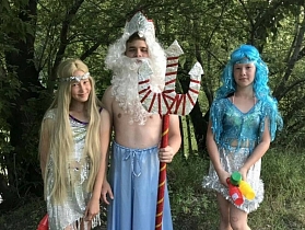 Не менее весело в Тополях прошел и вечер субботы. Он завершился веселым смехом и брызгами воды. Его величество Нептун и две прекрасные дочери русалки позабавили жителей микрорайона. Заодно рассказали ребятам, как нужно вести себя на воде во время купания, а также проверили знания ребят о морских глубинах. В соревнованиях с водой приняли участие все пришедшие на праздник. Носили воду в ладошках, выдавливали яблоки из воды и стреляли из водяных пистолетов по мишеням. Завершился День Нептуна танцевальной вечеринкой.