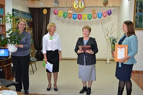 К поздравлениям присоединилась директор Библиотечной информационной системы города Кургана Людмила Дорофеева. Немало пожеланий и поздравлений прозвучало от руководителей школ и детских садов, которые очень тесно взаимодействуют с библиотекой, проводят совместные мероприятия. Отмечалось, что читательское ядро библиотеки составляют учащиеся школ №№ 24, 49, 43, 17, школы-интерната им. Карбышева и детских садов №№ 7 и 4.