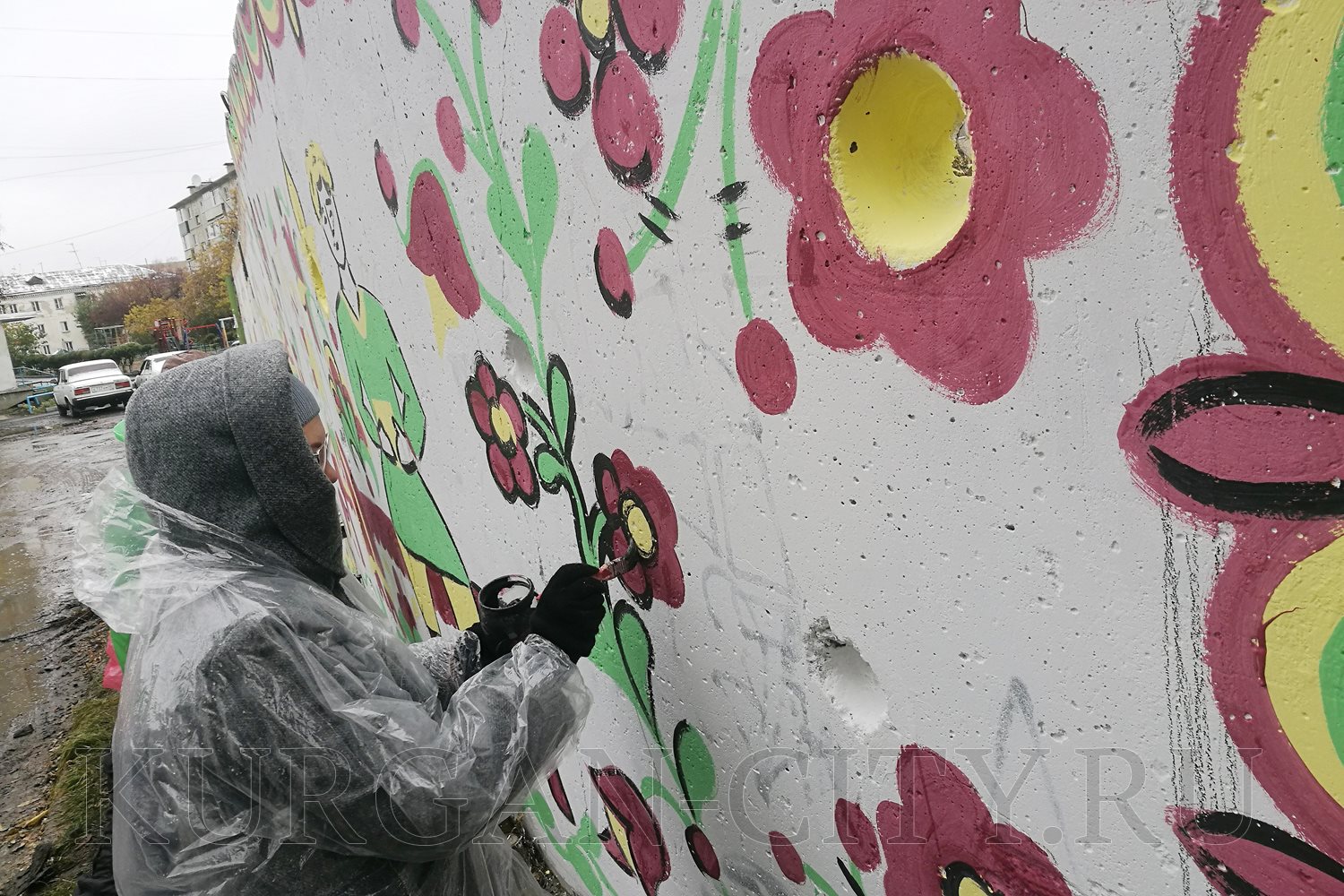 После процедуры согласования с Департаментом социальной политики Администрации города и СП «Тепловые сети» началась реализация проекта. Проконсультировавшись с курганскими художниками, активисты приняли решение нанести на бетонной стене забора рисунки в технике пермогорской росписи, богатой своими красочными сюжетами. Особенностью этой росписи является сочетание растительных узоров с разнообразными жанровыми сценами из бытовой жизни. Над разработкой эскизов трудились преподаватели отделения декоративно-прикладного творчества ДШИ № 4.
