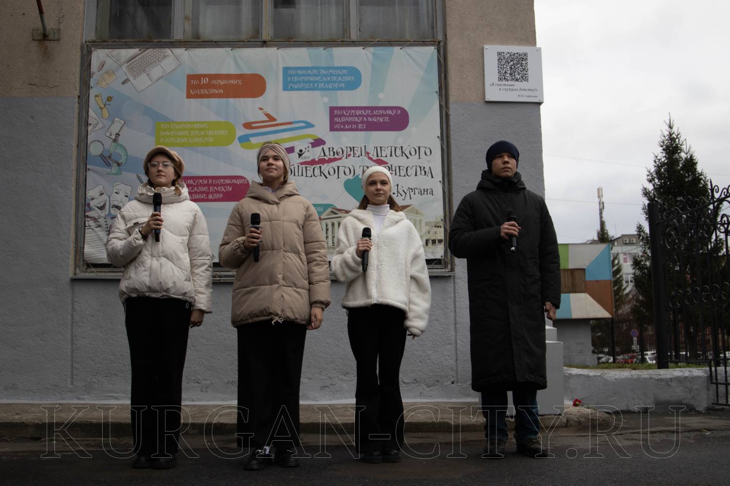 Сегодня состоялась торжественная церемония открытия мемориальной доски директору Дворца пионеров и школьников, Заслуженному работнику культуры РСФСР, Почетному гражданину города Кургана Марии Сафоновой. В мероприятии приняла участие заместитель директора Департамента социальной политики, начальник городского управления образования Ирина Паскевич. Торжественная церемония состоялась возле Дворца детского (юношеского) творчества, на фасаде которого установлена мемориальная доска с выгравированными на ней словами Марии Валентиновны: «Я счастлива – я служила детству!».