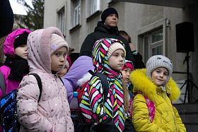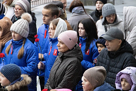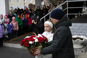 У мемориальной доски, открытой в честь легендарного директора Дворца пионеров и школьников Марии Сафоновой, торжественно установили корзину цветов.