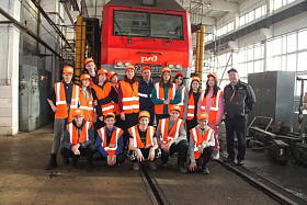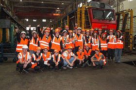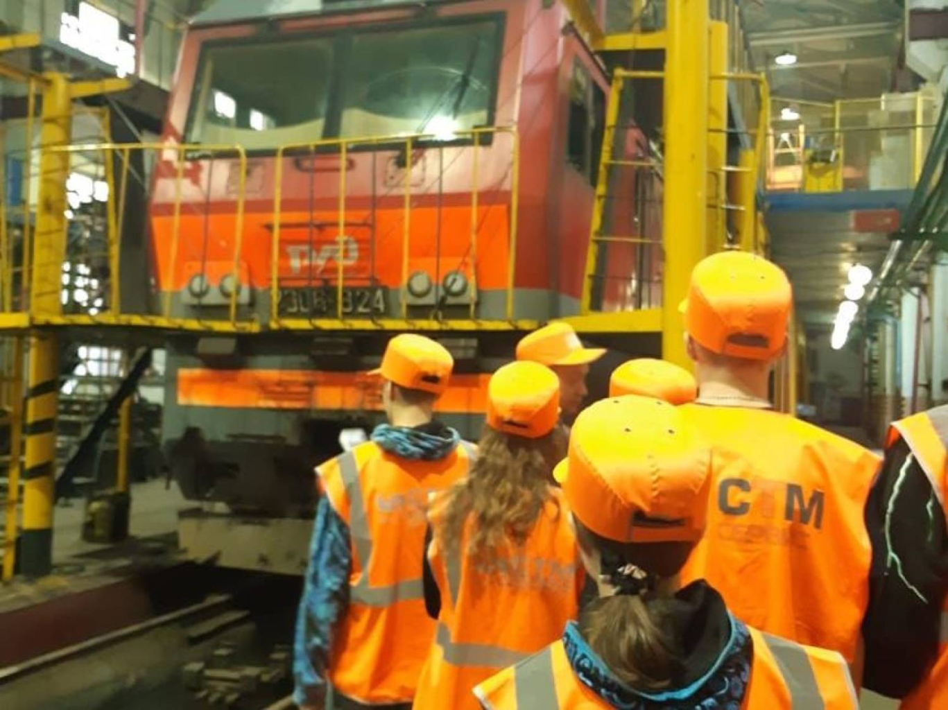 На первом этапе, в ходе «живых уроков» и экскурсий, участники проекта познакомились с историей предприятия, организацией производства, оборудованием производственных цехов, побывали в кабине современных локомотивов, разобрались в нюансах профессий и специальностей работников и служащих предприятия.