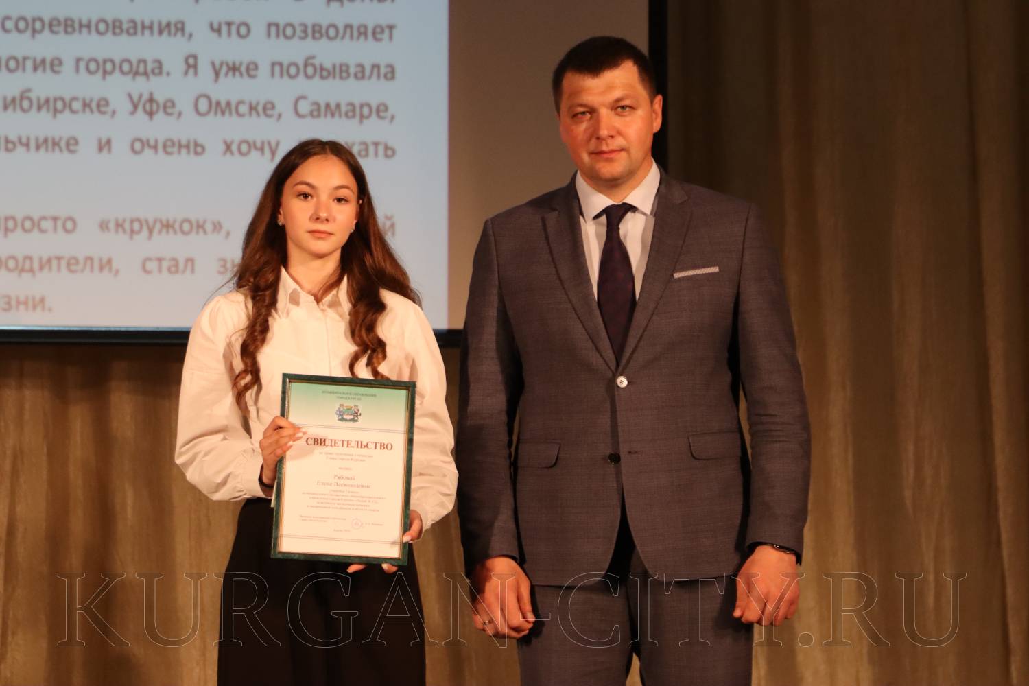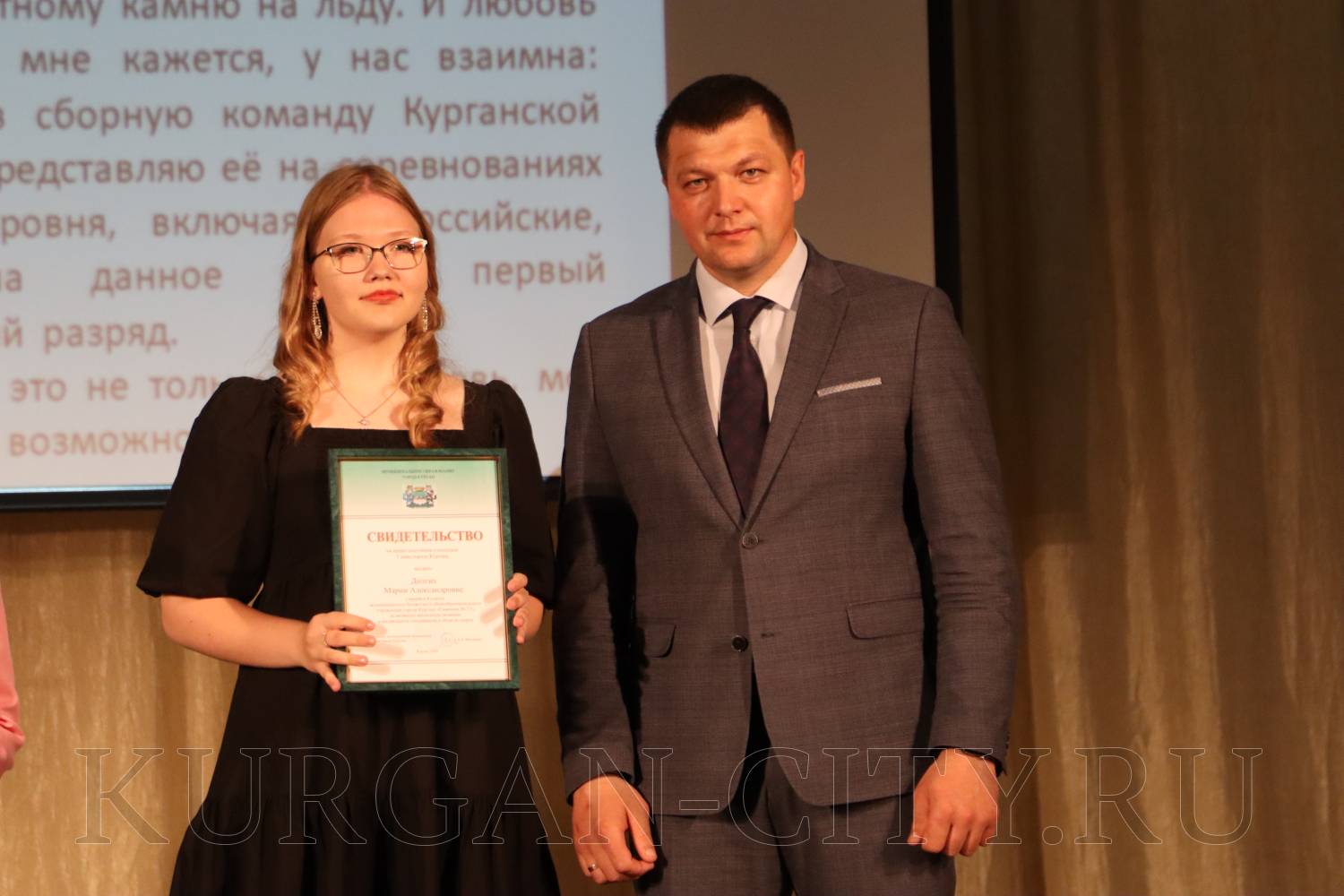 В номинации «Спорт» стипендиатами главы города по итогам 2023 года стали 7 человек. Это Алена Волчкова из гимназии № 32, которая входит в состав юношеской сборной России по шахматам. В 2023 году стала чемпионом России по блицу, дебютировала на первенстве мира и заняла 3-е место. Ученица гимназии № 27 Мария Долгих является чемпионкой города Кургана и Курганской области по кёрлингу, капитаном основного состава команды девушек. Полина Пильникова из гимназии № 47 и Даниил Тесленко из 56-ой школы профессионально занимаются лёгкой атлетикой. Даниил дважды становился призером первенства УРФО по данному виду спорта, также является призером первенства России по горному бегу вверх.