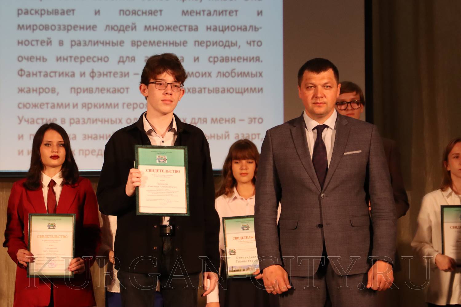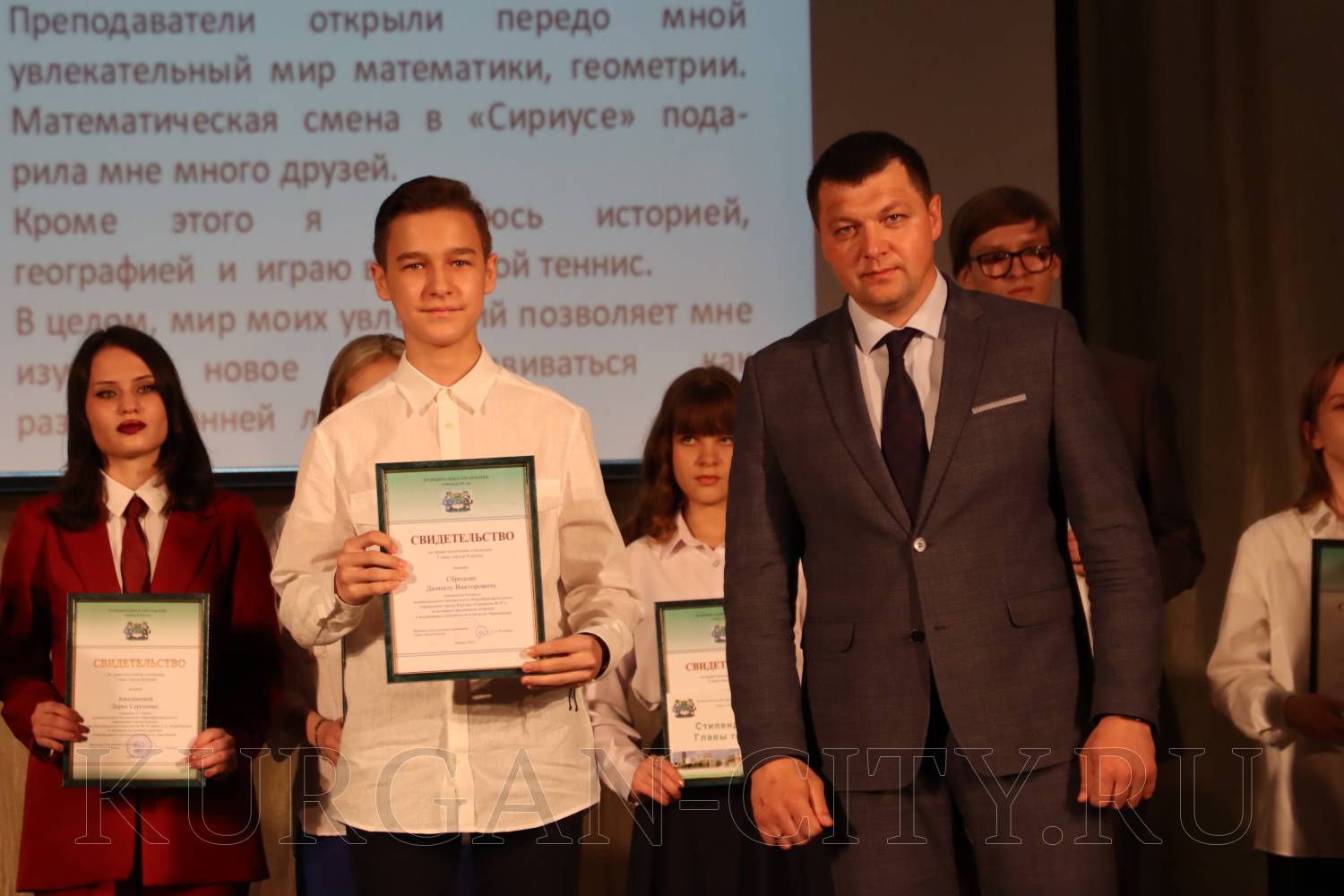 Отметим, стипендия главы города Кургана была учреждена в 2004 году с целью поощрения талантливых детей. Вручение стипендии главы города одаренным и талантливым детям стало в Кургане доброй традицией. В 2004 году стипендию получил 1 человек, а сегодня сертификаты на получение именной стипендии получили 27 курганских ребят.