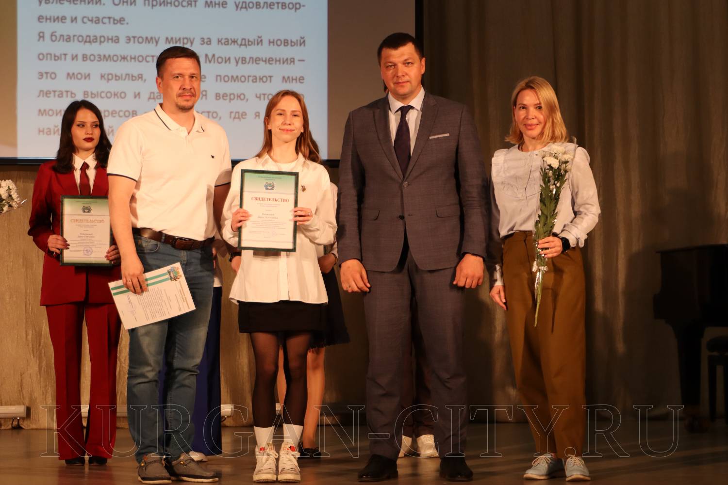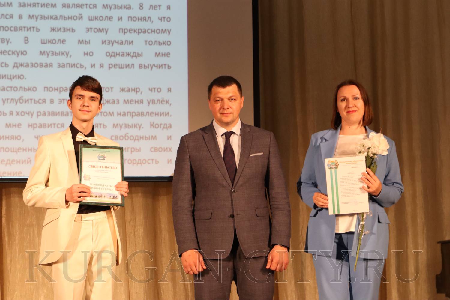 Стипендиатами Главы города в номинации «Культура» по итогам 2023 года стали 4 курганских школьника. Это ученик школы № 49 Дмитрий Клюев, юный пианист, который обучается в Детской школе искусств им. В.А. Громова, является лауреатом 6-ти Всероссийских конкурсов пианистов и 7-ми международных конкурсов музыкального искусства и международной олимпиады по сольфеджио. Ученица гимназии № 47 София Комарова также обучается в ДШИ им. В.А. Громова, в составе танцевального коллектива является лауреатом областного онлайн-фестиваля, лауреатом 4-х международных конкурсов искусств и 3-х федеральных проектов. Екатерина и Роман Романчук обучаются в гимназии №31, оба являются лауреатами творческих конкурсов и фестивалей.