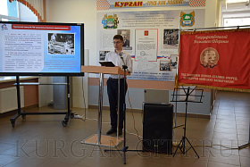 Ученик 9 «Б» класса Вячеслав Низирякин рассказал о заводе «Дормаш». Доклад школьник подготовил вместе с учителем Ириной Макеевой. Молодой человек доложил об эвакуации завода из Полтавской области в Курган в 1941 году. «Меня тронуло то, что завод эвакуировали под пулями и обстрелами, немцы уже были близко. В Кургане продолжил выпуск продукции в Народном доме, сейчас там расположен драмтеатр. Выпускал огнеметы системы Клюева, и изобретатель Клюев также приехал в наш город со своими специалистами. Порядка 70 человек с семьями были эвакуированы в Курган, 140 заводчан получили медали «За доблестный труд в Великой Отечественной войне 1941-45 гг.». Меня задел тот факт, что в основном на «Дормаше» работали старики и дети, которые шли в школу мимо завода, они вместе со всеми приближали день Победы», - поделился Вячеслав.