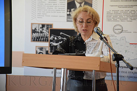 Во вступительном слове об эвакогоспиталях Кургана в годы Великой Отечественной войны, медперсонале и помощи населения в работе госпиталей и восстановлении здоровья раненых, возвращении их на фронт доложила учитель истории Людмила Ионина. Людмила Владимировна проинформировала, что благодаря работе врачей и внимательному уходу медперсонала 70% раненых и 90% больных возвращались в строй. «Эвакогоспитали в Кургане располагались в школах №№ 10, 11, 12, 28. Первый эвакогоспиталь № 1729 начал действовать с 30 июля 1941 года и являлся головным в Курганском гарнизоне, располагался в пределах Городского сада в зданиях Высшей коммунистической школы, ныне – Правительство Курганской области и пяти одноэтажных зданиях», - доложила учитель.