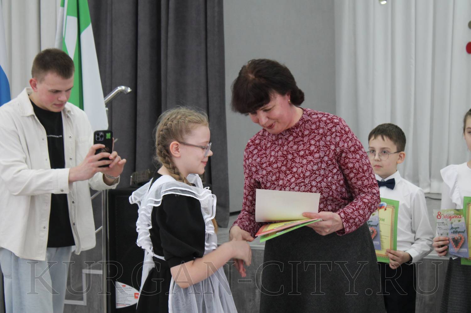 Также со словами приветствия и поздравления к ребятам обратилась депутат Курганской городской Думы Татьяна Федорова. Диплом за 1-ое место в номинации «Литературное чтение» был вручен учащейся 4-го класса гимназии № 31 Анне Воинковой. В секции «Искусство» победителем признана четвероклассница 27-ой гимназии Алина Хайсарова. Пятиклассник 36-ой школы Тимофей Белобородов стал лучшим в номинации «Литература. Русский язык. Языкознание». Десятиклассник школы № 17 Павел Гаврилов награжден диплом в секции «Языкознание», а одиннадцатиклассница из 27-ой гимназии Екатерина Ларюшкина стала первой в секции по литературе.