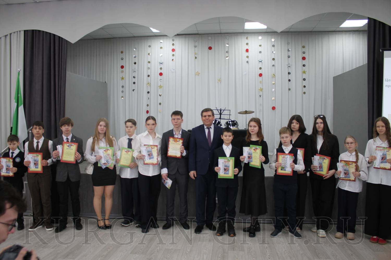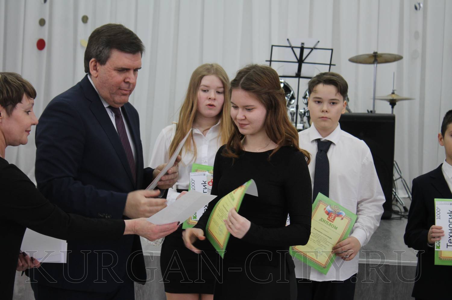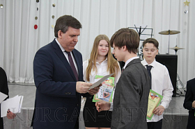 Приветствуя ребят, Михаил Тимофеев отметил, что все участники талантливые, умные, эрудированные, и что самое главное - увлеченные люди. «Каждый, кто присутствует в зале, уже по праву является победителем. Проведенные вами исследования - это не просто сухие факты и цифры. Это настоящая история, в которую вы погрузились, и благодаря своему упорству получили новые знания. Более того, в некоторых областях вам удалось сделать пусть небольшие, но значимые шаги в интересующей вас области», - сказал Михаил Аркадьевич. Он подчеркнул, что то малое, когда-то заинтересовавшее в молодом возрасте и закрепившееся в памяти, впоследствии может развиться в перспективный и важный для общества труд. По его словам, собравшиеся в зале ребята - это именно то будущее, которое будет развивать как город Курган, так и Курганскую область.