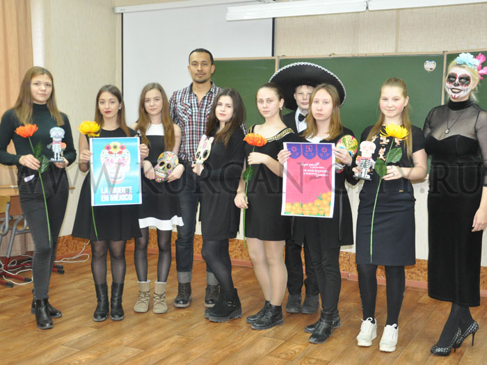 Иностранные гости и ребята поприветствовали друг друга на испанском языке и познакомились. Затем мексиканские студенты подробнее рассказали о Дне мертвых, его символах и атрибутах.